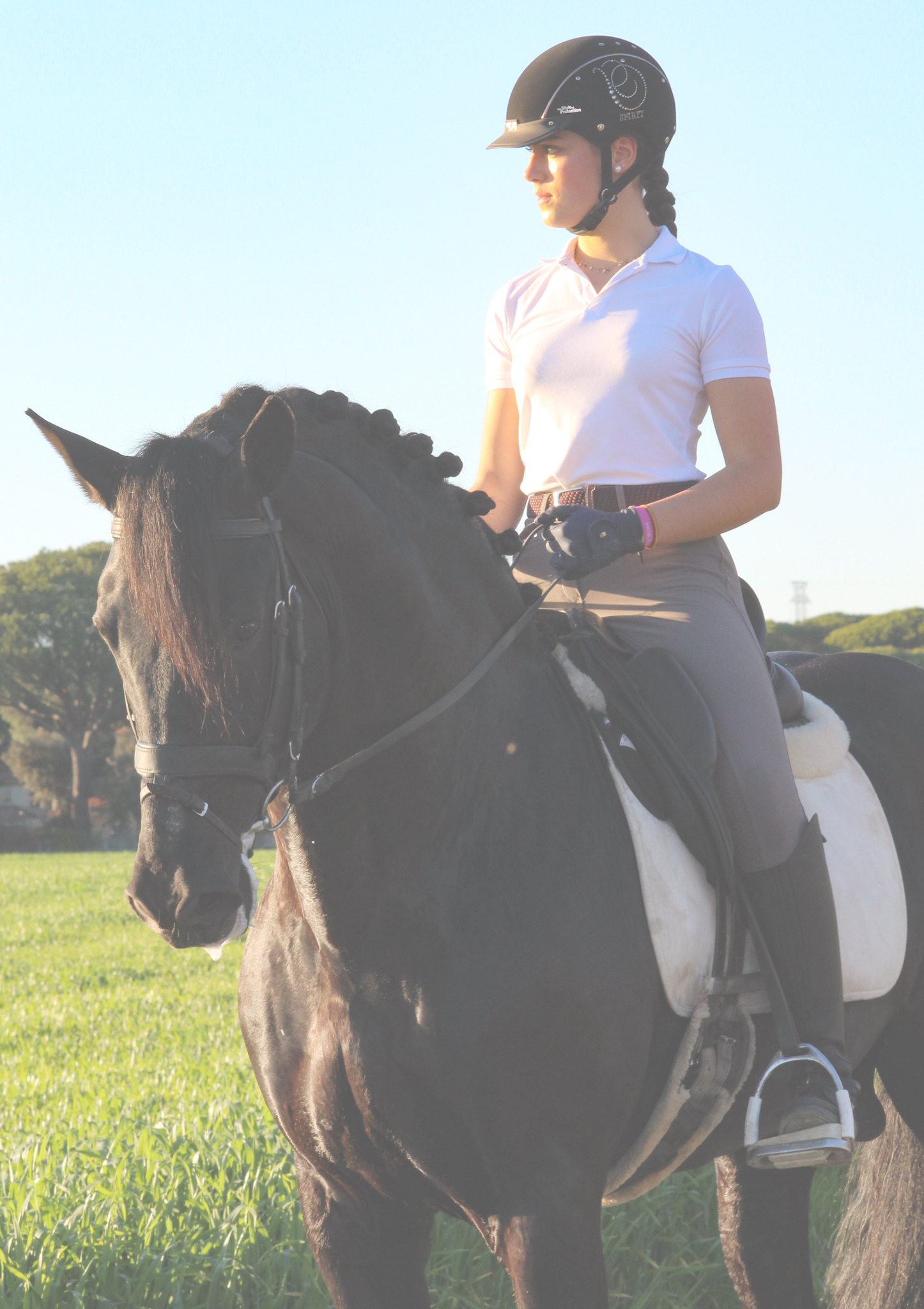 Casco de montar para un look perfecto Este casco de montar viene con sofisticados cristales Swarovski® combinados con efecto de terciopelo negro. Tiene una ventilación excelente y, por supuesto,...