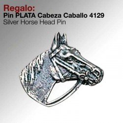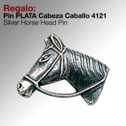 Pin fabricado en plata, con la forma de una cabeza de caballo.Se suministra en una caja.