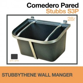 Comedero pared de plástico duro.Con barras antivuelco.Con refuerzo metálico.Capacidad: 28 litrosColor: Negro.