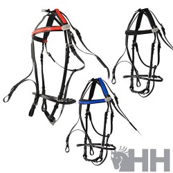 Realizado en cuero y nylon con todo el hebillaje de acero inoxidable de primera calidad. La versión doble incorpora retranca. Cabezada y sillín de cuero. El pechopetral mostrado se refiere al...
