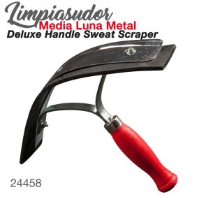 Limpiasudor con forma de media luna de metal.Mango de maderaSin dientes.