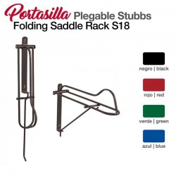 Portasillas plegable con 2 ruedas.Fabricado en metal.Lleva una bandeja en la parte inferior.Para 1 silla y 2 cabezadas.Color: Negro.