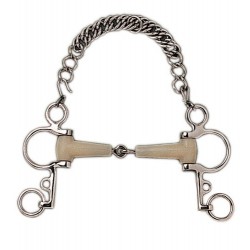 Bocados con anillas y piernas de acero inoxidable pero con embocadura de plástico con sabor a manzana y núcleo central de acero inoxidable. No tóxico, suave, flexible y duradero. Medidas: 12,5 y...