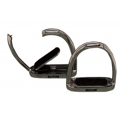 Estribo de última generación equipado con un sistema a base de imanes que posibilitan su apertura en caso de derribo del jinete. También, mediante un práctico cierre, se puede dejar el sistema...