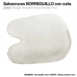 Fabricado en espuma.Forrado de borreguillo sintético.Con hueco para la cruz del caballo.Color: Blanco.Fabricado en ZALDI.
