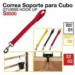 Resistente correa soporte de 25mm de ancho con mosquetón utilizada para colgar un cubo. Lleva un fuerte mosquetón de gatillo en un extremo de la correa para enganchar el asa del cubo fácilmente y...
