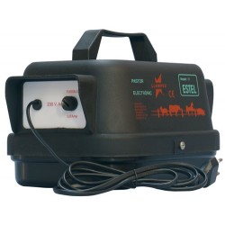 Pastor para conectar a la red 230 voltios. Energía de impulsos máx. 9500 mJuls. Tensión impulsos cresta 10000 v. Alcance: 100 km. Consumo: 5 w. Peso: 1,813 kg. Dimensiones: 181x185x284 mm.