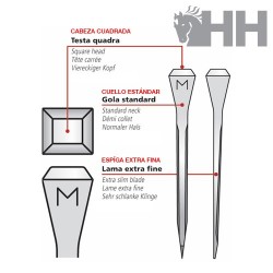 Clavo desarrollado para caballos de deporte y de paseo. La cabeza fuerte y grande permite un herraje muy sólido. Han sido estudiados para evitar las rupturas de los cascos. La forma del cuello...