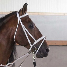 Muserola francesa.Rienda y falsa rienda de cuero.Hebillaje inoxidable.Tamaño único.Colores: Negro, Marrón, Avellana, Negro/Blanco.Fabricada en ZALDI.