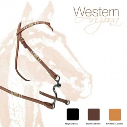 Cabezada de doble rienda y doble montante para utilizar con bocado y filete. Incluye riendas realizadas en cuero liso fino muy suave. Testera acolchada y anatómica con el ahogadero situado exteriormente sobre dos anillas laterales. Muserola anatómica realizada en dos piezas ajustables muy ancha y acolchada sin cierrabocas. Realizada íntegramente con cuero vegetal de primera calidad procedente de USA y curtido de forma ECOLÓGICA también en USA. Hebillaje de acero inoxidable.