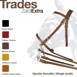 Cabezada de doma clásica con amplio apoyo en la nuca y posibilidad fácil de retirar un montante para usar solo con filete. Forma anatómica lateral y doble ahogadero a dos alturas. Muserola muy ancha y ajustable. Elegante frontalera con cristales. Incluye riendas.