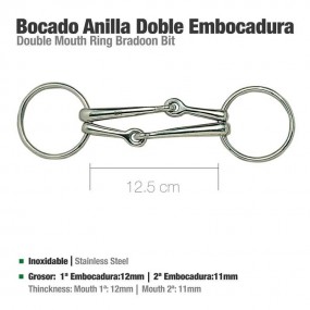 Diametro anilla: 6.5 cm.Calibre de la 1ª embocadura: 12 mm.Calibre de la 2ª embocadura: 11 mm.