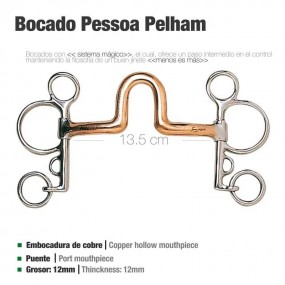 Pierna: 7.5 cm.Portamozos: 4.5 cm.Grosor embocadura: 13 mm.Con barbada.Dorado.
