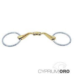 Filete de anilla suelta con embocadura doble partida y en disposición de 45º sobre la vertical de la boca para permitir una mejor colocación de la embocadura en la boca del caballo y dejar espacio...