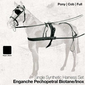 Enganche fabricado en biotane recubierto de polímero.Piezas metálicas de acero inoxidable.Cabezada con muserola y testera acolchadas.Remaches de la cabezada en acero inoxidable plano de 32 mm. de...