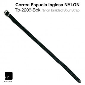Correa de nylon con trenzado doble para espuela inglesa.Hebilla cromada.Color: Negro.