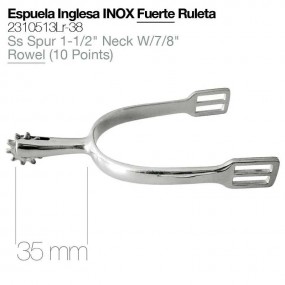 Espuela unisex.Gallo de 35 mm.Con ruleta dentada.Sin correa.Fabricada en acero inoxidable.