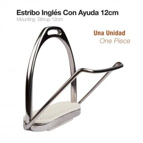 Estribo inglés con ayuda para subirse.Se vende por unidades.La ayuda tiene un alto de 14 cm. y un ancho de 15 cm.Color: Cromado.