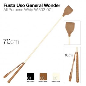Fusta de uso general de 70 cm.Fabricada en cuero trenzado.Mango de cuero de 18 cm.Color: Negro.
