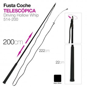 Fusta de coche de 200 cm y 222 cm de latiguillo.Con mango de goma de 22 cm.La unión de la fusta con el latiguillo es giratoria.Color: Negro.