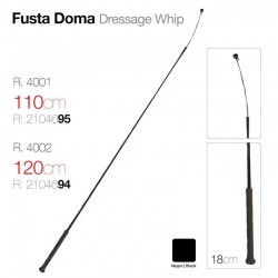 Fusta de doma de 110 cm.Con mango de goma antideslizante de 18 cm.Color: Negro.Disponible en medida de 120 cm. (ref. 2104694).