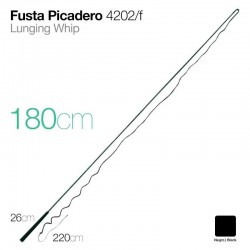 Fusta de picadero de 160 cm y 200 cm de latiguillo.Con mango de goma de 24 cm.La unión de la fusta con el latiguillo es giratoria.Color: Negro.Disponible en medida de 180 cm (ref. 2104624).
