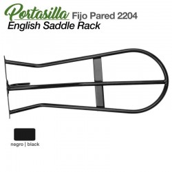 Porta arnés para riendas de enganche.Fabricado en metal.Plastificado en color Negro.Se fija a la pared mediante tornillos (no incluidos).Se complementa con el porta arnés para sillín (ref....