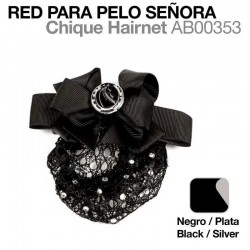 Elegante redecilla elástica con pedrería para recoger el cabello, combinada con un lazo negro y broche con cabeza de caballo dentro de una herradura plateada.Adornada con cristales brillantes...