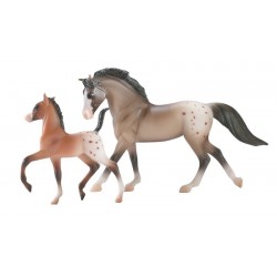 Cada juego incluye una yegua y un potrillo. Disponible únicamente como surtido de 8 piezas (2 juegos de 4 diferentes razas y capas). Escala STABLEMATES.