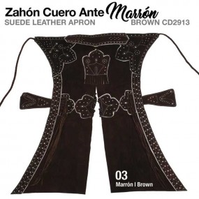 Zahon fabricado en cuero y ante.Calado Blanco.Color: Marrón.Medidas: Altura de 108 cm. y contorno de Cintura de 78 cm.