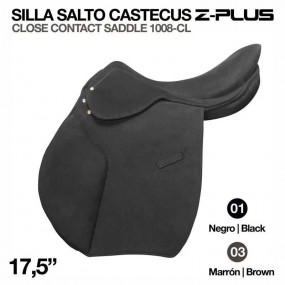 Silla de salto fabricada en Z-Plus.Asiento semiplano.Medida del baste: 50 cm.Medida del faldón: 35 cm.Colores: Negro, Marrón.Ideal para escuelas de equitación y para principiantes.Tambien sirve...