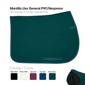 Mantilla de doma fabricada en neopreno en la parte exterior y PVC en la parte interior.Tamaño único (Uso General).Colores: Blanco, Negro, Rojo, Verde, Azul.